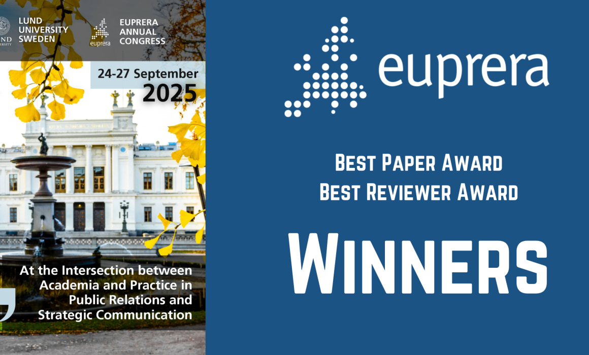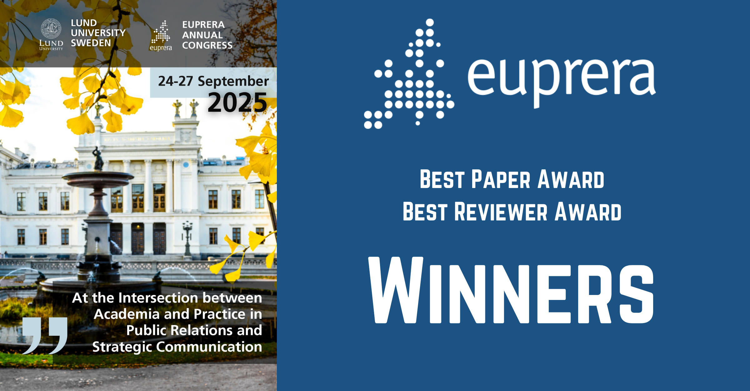 On the occasion of its annual Congress, the European Public Relations Education and Research Association (EUPRERA) has awarded authors for their excellent research and the best reviewer for their contribution. This year, the annual Congress was hosted by Lund University in Lund, Sweden.